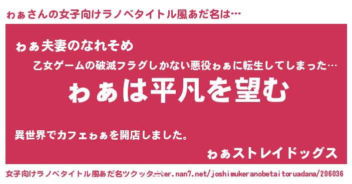 | ヘコむあだ名 | 『ゎぁぷりん』『ゎぁ(苦笑)』 |