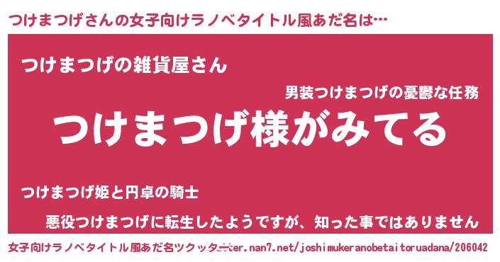 | 男性向けラノベタイトル風あだ名 | 『つけまつげの嫁は女の子じゃないと思った?』 |