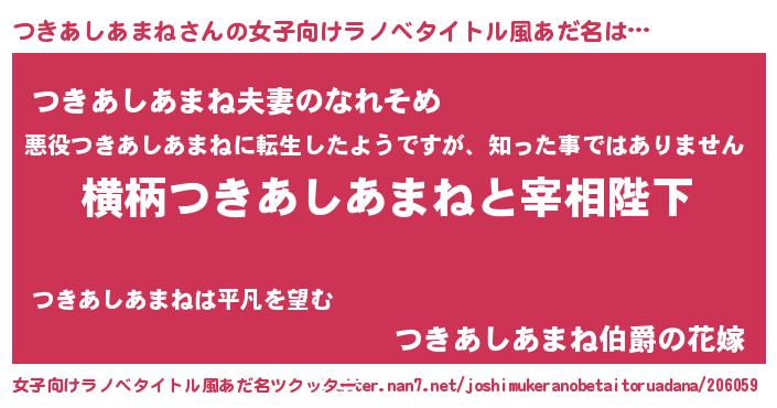 | 男性向けラノベタイトル風あだ名 | 『つきあしあまねに滅ぼされるだけの簡単なお仕事です』 |