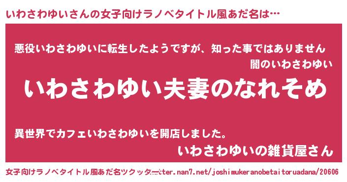 | 男性向けラノベタイトル風あだ名 | 『おまえをオタクにしてやるから、俺をいわさわゆいにしてくれ! 』 |