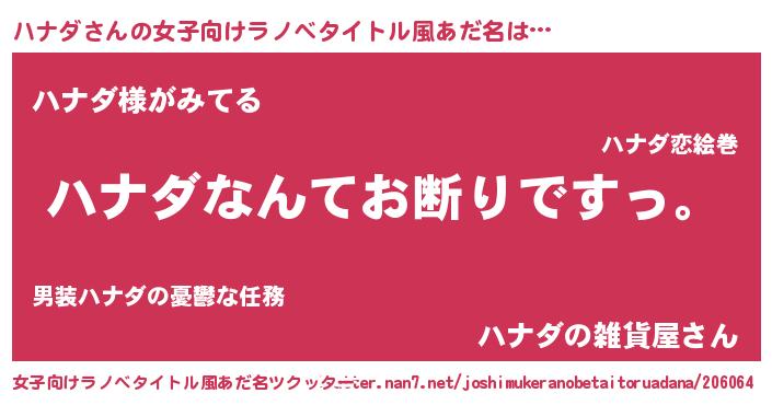 | 男性向けラノベタイトル風あだ名 | 『魔法科高校のハナダ』 |