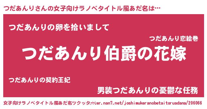 | 男性向けラノベタイトル風あだ名 | 『やはりつだあんりの青春ラブコメはまちがっている 』 |