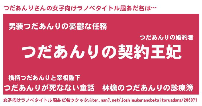 | 胡散臭い通販商品みたいなあだ名 | 『来世でも幸せになれる水素水…その名も「つだあんり」』 |