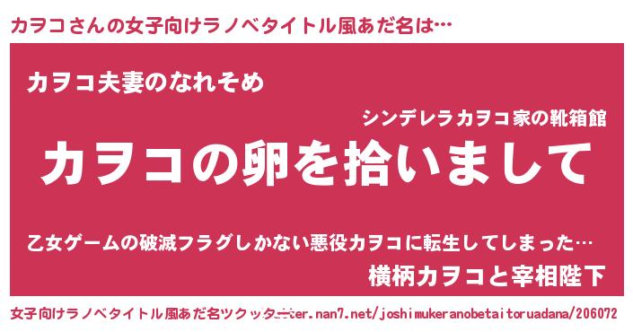 | ピコ太郎風あだ名 | 『カヲ八郎』『カカ太郎』『ピカ一郎』 |