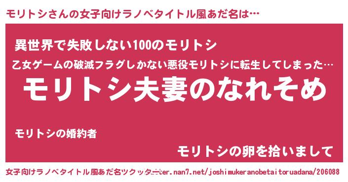 | 男性向けラノベタイトル風あだ名 | 『おまえをオタクにしてやるから、俺をモリトシにしてくれ! 』 |