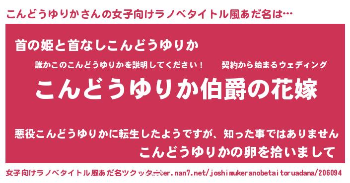 | 男性向けラノベタイトル風あだ名 | 『やはりこんどうゆりかの青春ラブコメはまちがっている 』 |