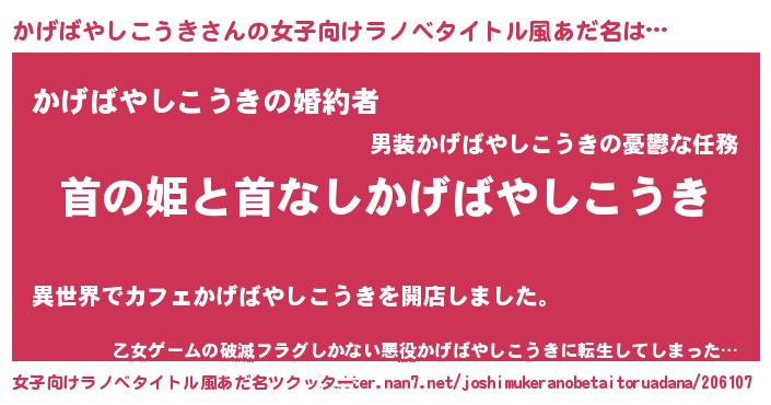 | 男性向けラノベタイトル風あだ名 | 『はたらくかげばやしこうきさま!』 |
