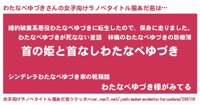 | 欧米人風あだ名 | 『アンジェラ・わたなべゆづき』 |