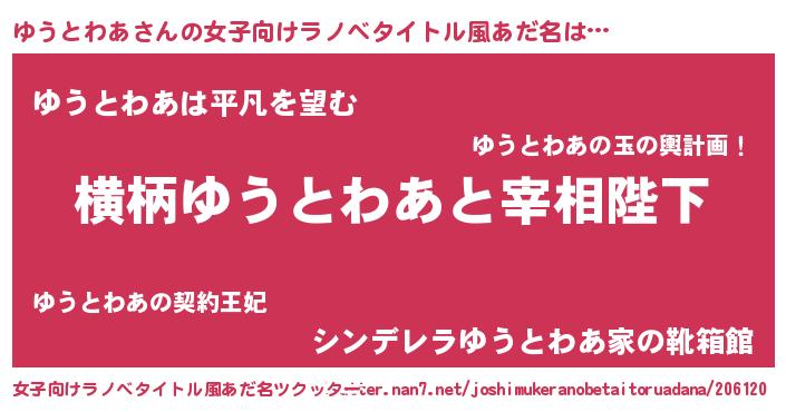 | 男性向けラノベタイトル風あだ名 | 『ゆうとわあに滅ぼされるだけの簡単なお仕事です』 |