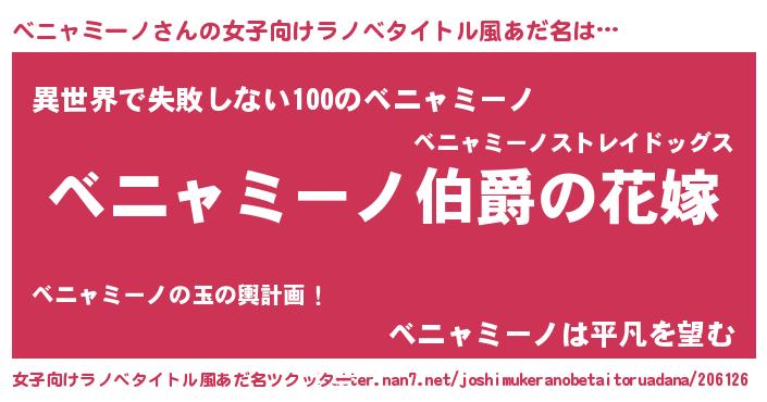 | 男性向けラノベタイトル風あだ名 | 『やはりベニャミーノの青春ラブコメはまちがっている 』 |