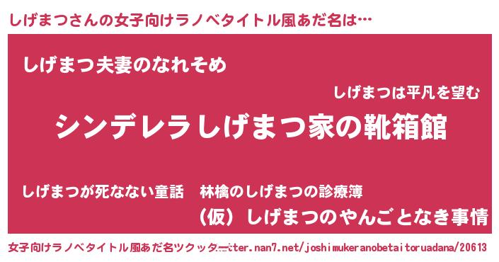 | 男性向けラノベタイトル風あだ名 | 『緋弾のシゲマツ』『しげまつの憂鬱』 |