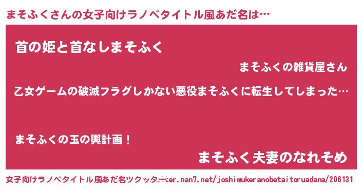 | 男性向けラノベタイトル風あだ名 | 『この素晴らしい世界にまそふくを!』 |