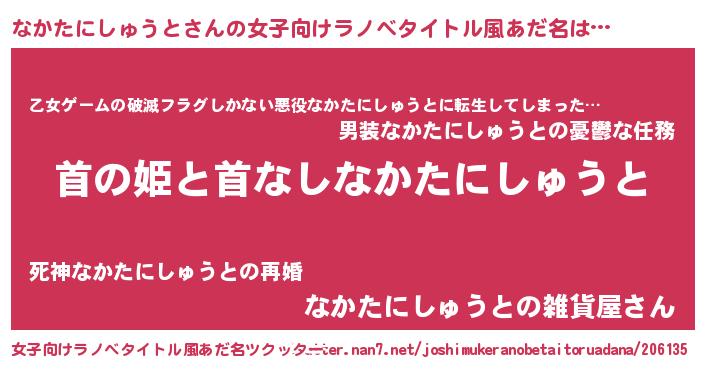 | 意味不明あだ名 | 『住所不定無職なかたにしゅうと(14歳)』 |