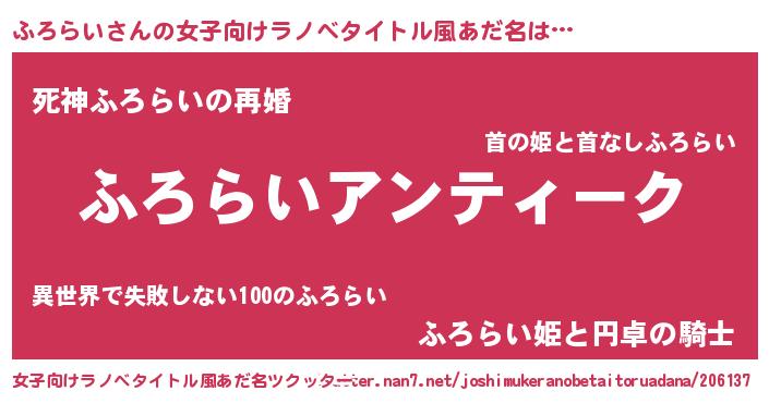 | 男性向けラノベタイトル風あだ名 | 『魔法科高校のふろらい』 |