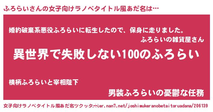 | 胡散臭い通販商品みたいなあだ名 | 『絶対に幸福をもたらす水素水…その名も「ふろらい」』 |