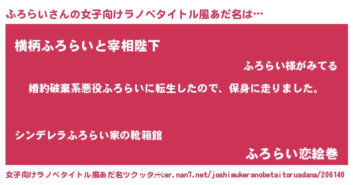 | 男性向けラノベタイトル風あだ名 | 『転生したらふろらいだった件』 |