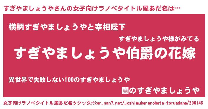 | 意味不明あだ名 | 『すぎやましょうやフォーエバー』 |