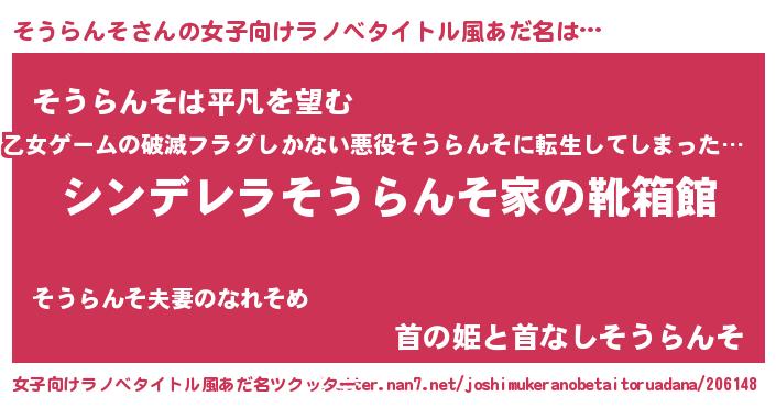 | 萌えアニメ | 主人公(そうらんそ)のあだ名『 そうてゅん』 |