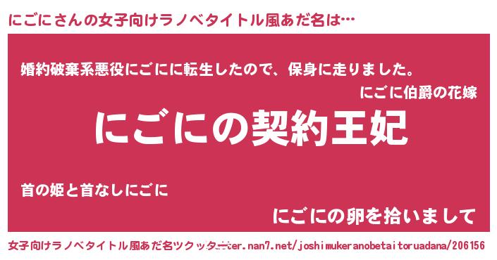| 男性向けラノベタイトル風あだ名 | 『誰もが恐れるあのにごにが、ぼくの専属メイドになるようです。』 |