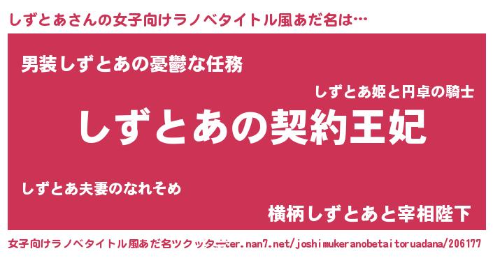 | 胡散臭い通販商品みたいなあだ名 | 『来世でも幸せになれる水素水…その名も「しずとあ」』 |