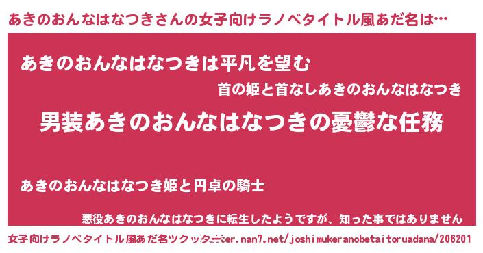 | 胡散臭い通販商品みたいなあだ名 | 『全米が絶賛したサプリメント…その名も「あきのおんなはなつき」』 |