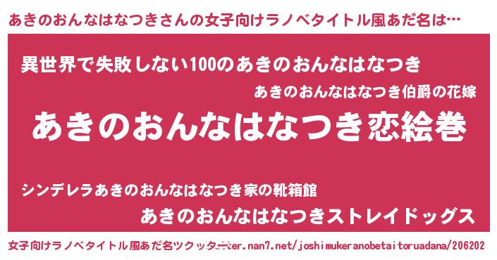 | 男性向けラノベタイトル風あだ名 | 『ノーゲーム・ノーアキノオンナハナツキ』 |