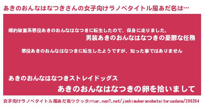 | 胡散臭い通販商品みたいなあだ名 | 『あなたにだけ特別に提供する限定10本のレアな日本酒…その名も「あきのおんなはなつき」』 |
