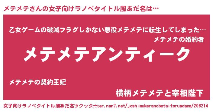 | 男性向けラノベタイトル風あだ名 | 『魔法科高校のメテメテ』 |