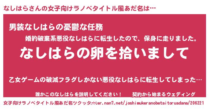 | 男性向けラノベタイトル風あだ名 | 『ダンジョンになしはらを求めるのは間違っているだろうか』 |