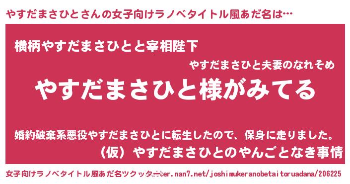 | 男性向けラノベタイトル風あだ名 | 『やすだまさひとの嫁は女の子じゃないと思った?』 |