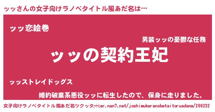 | 男性向けラノベタイトル風あだ名 | 『ッッという概念が存在しない退屈な世界 』 |