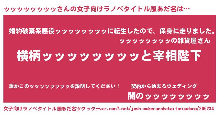 | 男性向けラノベタイトル風あだ名 | 『ッッッッッッッッに滅ぼされるだけの簡単なお仕事です』 |