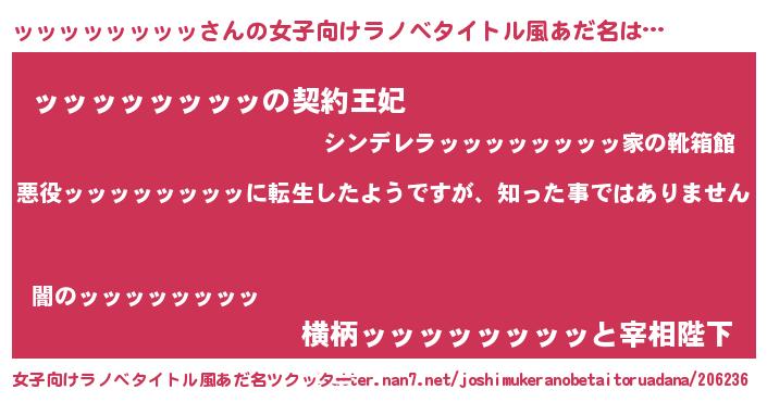 | 男性向けラノベタイトル風あだ名 | 『この素晴らしい世界にッッッッッッッッを!』 |