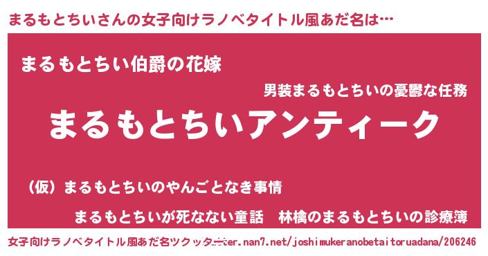| 男性向けラノベタイトル風あだ名 | 『魔法科高校のまるもとちい』 |