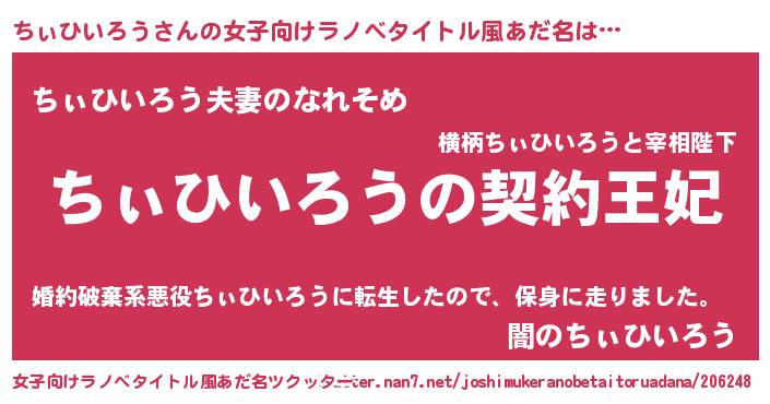| 男性向けラノベタイトル風あだ名 | 『誰もが恐れるあのちぃひいろうが、ぼくの専属メイドになるようです。』 |