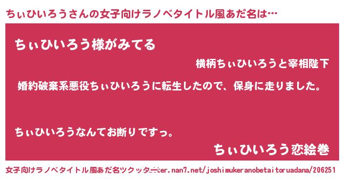 | 胡散臭い通販商品みたいなあだ名 | 『信頼と実績のサプリメント…その名も「ちぃひいろう」』 |