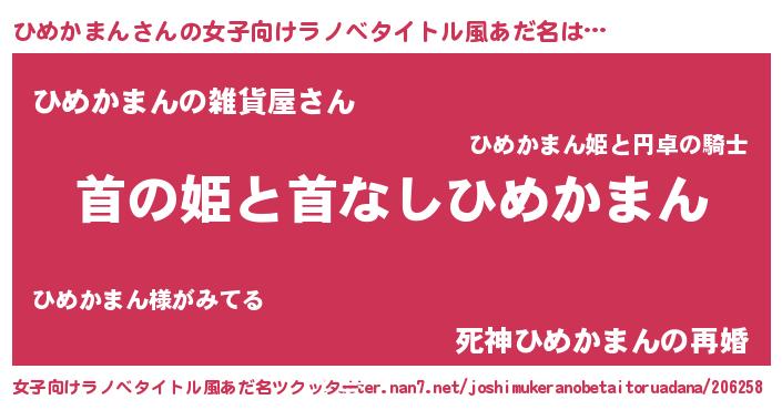 | 市区町村名 | 『名古ひめ市』『ひめ幌市』 |