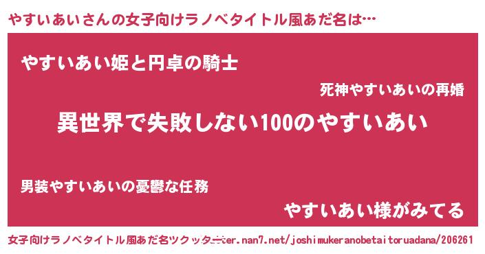 | 男性向けラノベタイトル風あだ名 | 『やすいあいという概念が存在しない退屈な世界 』 |
