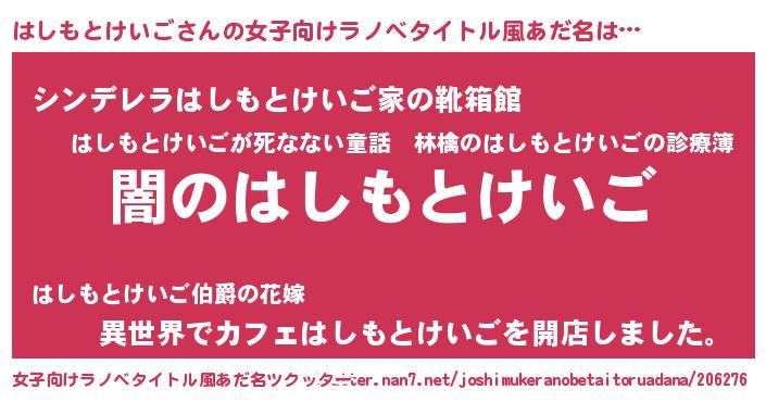 男性向けラノベタイトル風あだ名 | 『Re:はしもとけいごから始める異世界生活』 |