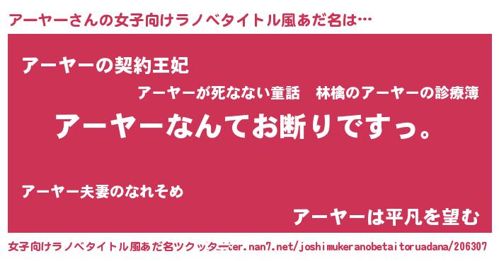 | ヘコむあだ名 | 『アーヤー(笑)』『アーお』 |