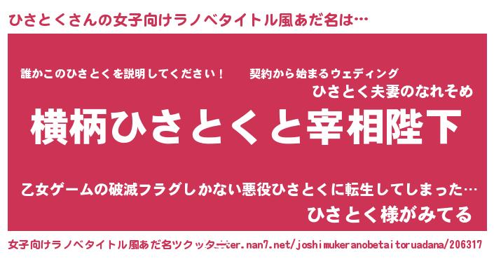 | ピコ太郎風あだ名 | 『ヒコ史郎』『ヒサ三郎』『ヒヒ太郎』 |