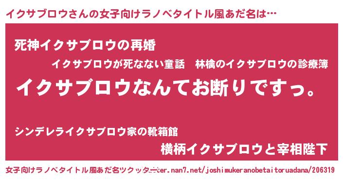 | ヘコむあだ名 | 『イク太郎』『イクサブロウ(笑)』 |