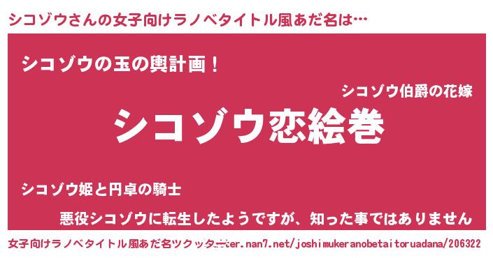 | 男性向けラノベタイトル風あだ名 | 『ノーゲーム・ノーシコゾウ』 |