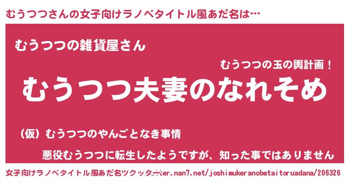男性向けラノベタイトル風あだ名 | 『おまえをオタクにしてやるから、俺をむうつつにしてくれ! 』 |