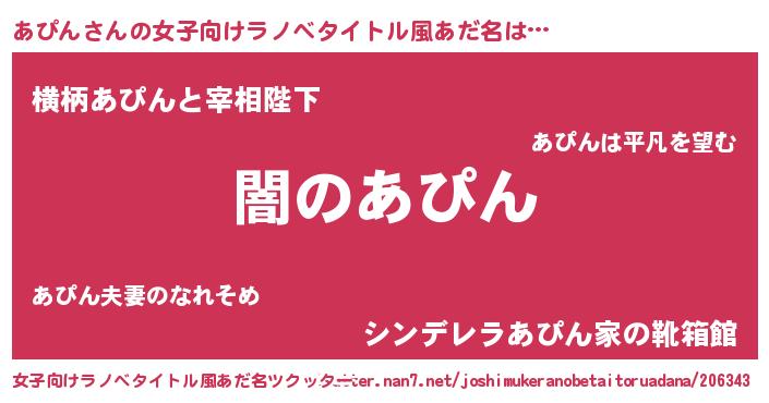 | 男性向けラノベタイトル風あだ名 | 『Re:あぴんから始める異世界生活』 |