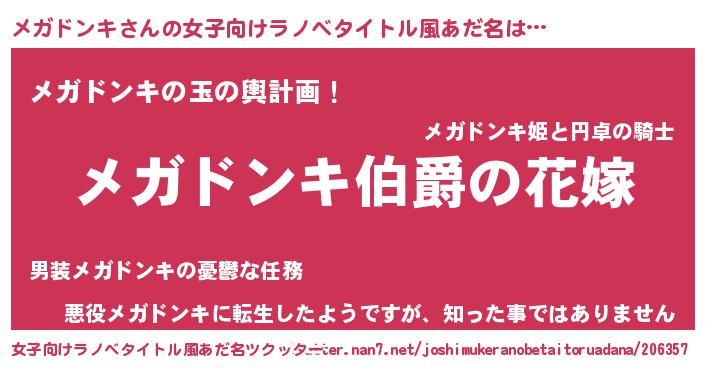 ファンタジー風あだ名 | 『エターナルメガドンキー』『メガフェル』 |