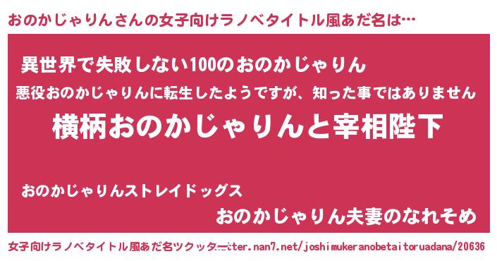 | 胡散臭い通販商品みたいなあだ名 | 『来世でも幸せになれる水素水…その名も「おのかじゃりん」』 |