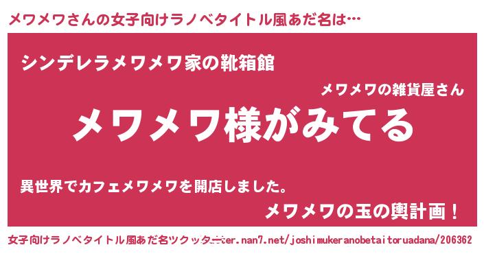 男性向けラノベタイトル風あだ名 | 『メワメワの嫁は女の子じゃないと思った?』 |