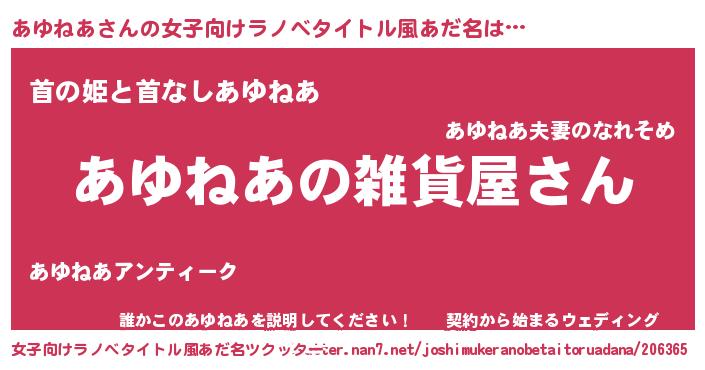 男性向けラノベタイトル風あだ名 | 『やはりあゆねあの青春ラブコメはまちがっている 』 |