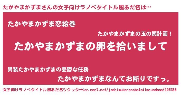 男性向けラノベタイトル風あだ名 | 『たかやまかずまの嫁は女の子じゃないと思った?』 |